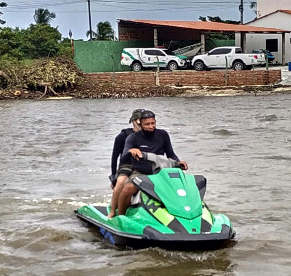 Além dos dois jet Skis, uma lancha grande (cachalote) realizaram o patrulhamento neste domingo (16)