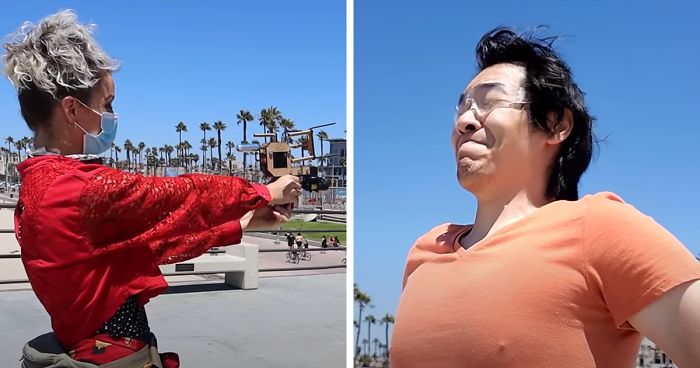 O apetrecho da máscara se tornou parte essencial na vestimenta da população durante a pandemia, o que comprovadamente protege as pessoas, reduzindo a velocidade do alastramento das infecções e protegendo os mais vulneráveis. Porém, ainda existem pessoas que resistem e, para elas, Allen Pan criou uma arma que dispara uma máscara contra suas caras.