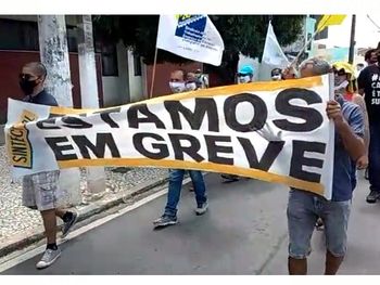 Trabalhadores dos Correios – que deflagaram greve desde terça (18) – participaram de uma passeata para cobrar o cumprimento dos direitos trabalhistas e carregaram um caixão com a imagem do presidente da empresa, o general Floriano Peixoto, na manhã desta quinta-feira (20), no centro de Maceió.