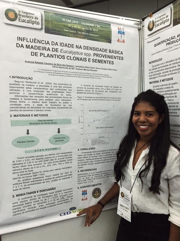 A aprovação em primeiro lugar na seleção de mestrado do Programa de Pós-graduação em Recursos Florestais, sub-área de Celulose e Biorrefinaria, da Universidade de São Paulo (USP), é a mais recente vitória da jovem Andreza Rafaella Carneiro da Silva dos Santos, egressa do curso de Engenharia Florestal do Campus de Engenharias e Ciências Agrárias (Ceca) da Universidade Federal de Alagoas. O excepcional desempenho durante a graduação, possibilitou a jovem fazer a abreviação da duração do curso, destacando-a também dentro da Universidade.