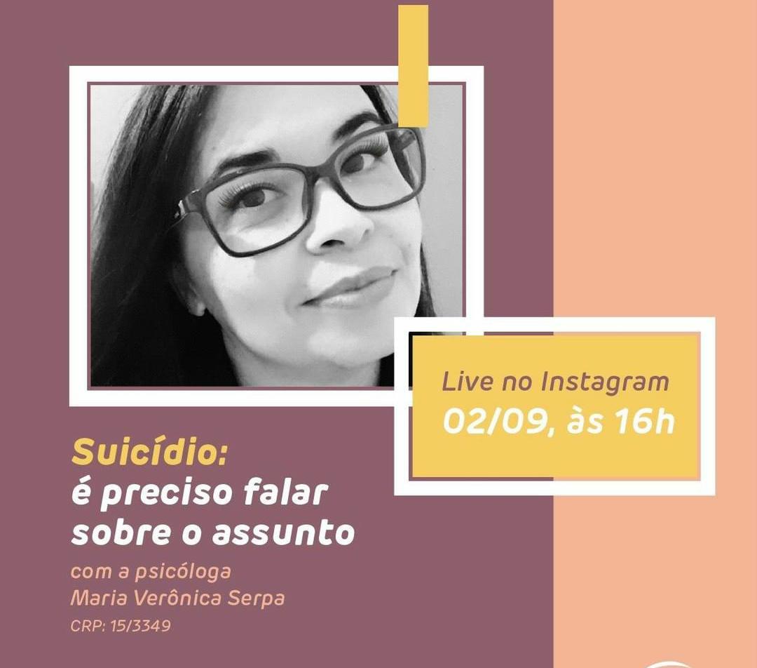 A live terá como objetivo da live é informar e promover o tratamento àqueles que precisam de ajuda a fim de evitar um desfecho trágico, tendo em vista que os número de suicídios atingem 1 milhão por ano. O assunto será tratado pela psicóloga Maria Verônica Serpa, que falará sobre os fatores de riscos e possíveis sinais que merecem atenção.