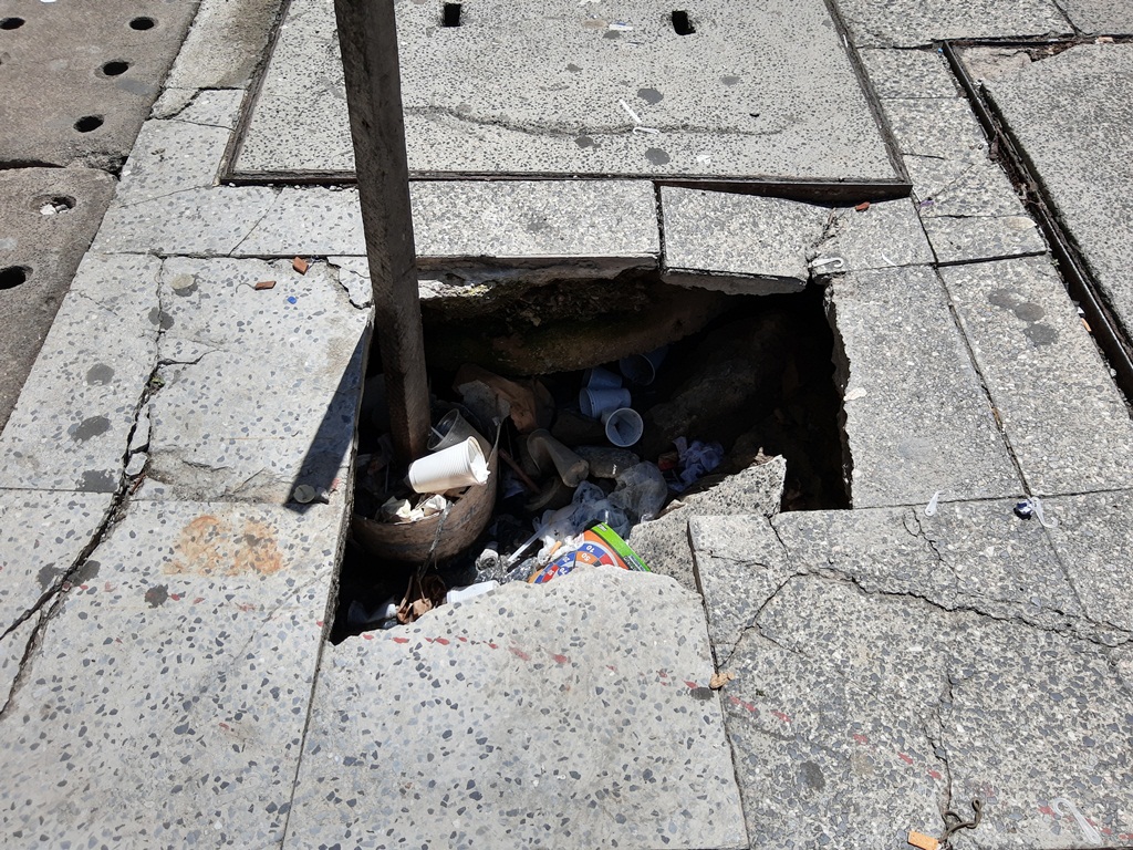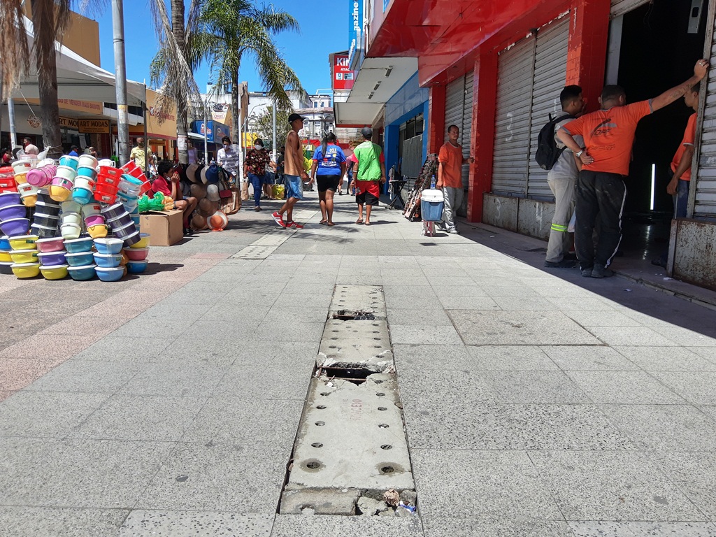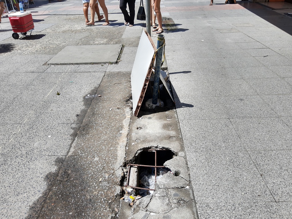 Quem anda pelo comércio de Maceió não demora a encontrar, em algum ponto do calçadão, buracos que põem em risco os pedestres mais desavisados. Isso porque, várias tampas de concreto, das valetas que escoam a água da chuva, estão quebradas. Os buracos são grandes e acabam se tornando armadilhas .