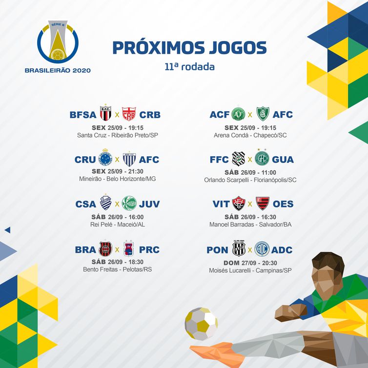 Mais cedo, às 19h15, a Chapecoense, quarta colocada, duela como o América-MG, quinto na tabela, na Arena Condá, na cidade Chapecó (SC). Ambos possuem 17 pontos cada.
