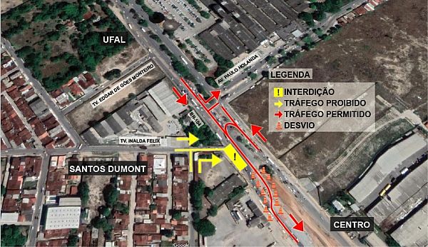 Durante o período de 20 dias, haverá a interdição da ligação entre a BR-104 e o entroncamento com a travessa Inalda Felix, próximo ao Centro de Distribuição Domiciliária Carlos Olímpio (agência dos Correios). Com isso, quem trafega pela travessa Inalda Felix em direção ao bairro Santos Dumont ou fazendo o caminho inverso, deve utilizar a travessa Edgar de Góes Monteiro como alternativa.