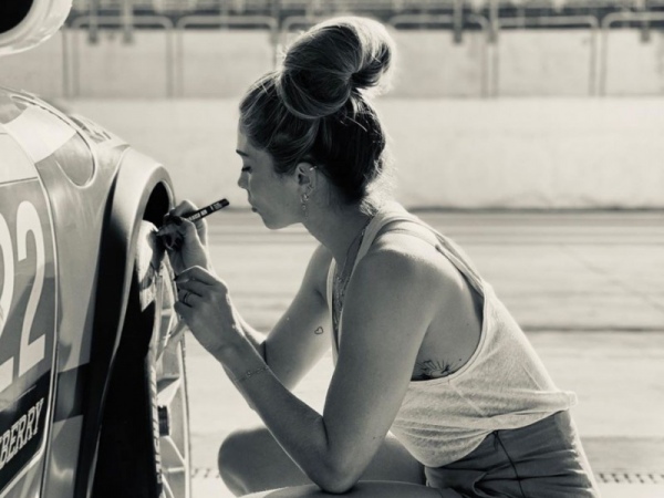 Grazi Massafera deixou uma declaração de amor no carro de corrida de Caio Castro. A atriz escreveu “te amo” na roda do automóvel do ator, que postou cliques do momento e disse: “Agora o carro vira tempo sozinho”.