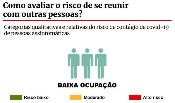 Risco baixo – Tente manter ao menos dois metros de distância de outras pessoas e use máscara.