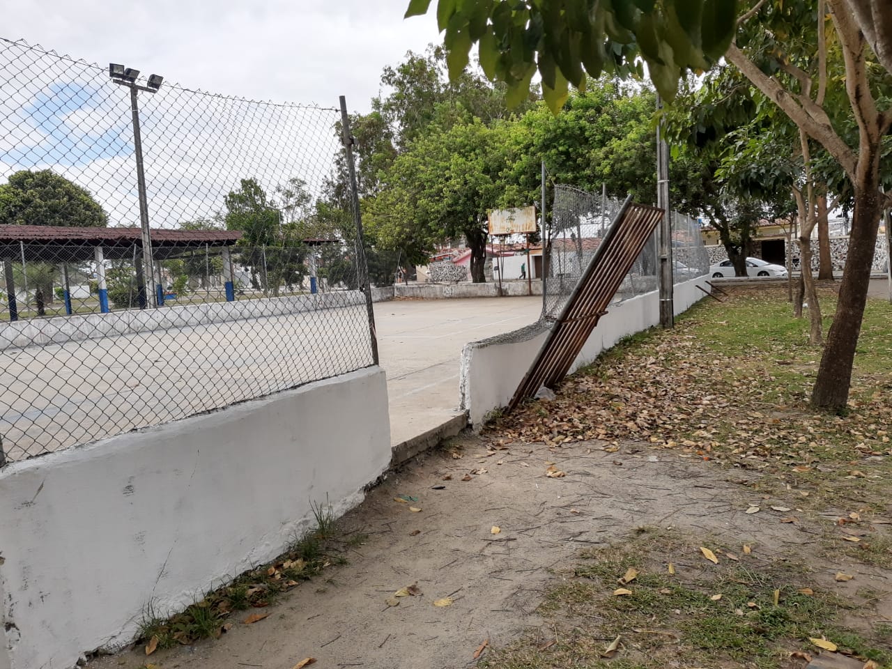 Equipamentos de lazer estão com alambrando e cercas retorcidas, além de quadras e bancos quebrados