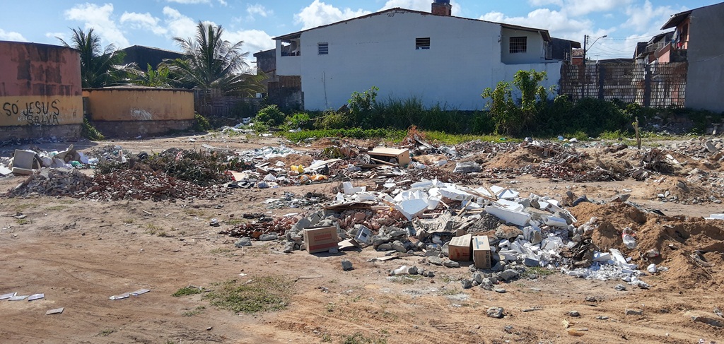 Quem passa pela Avenida Valentim dos Santos Diniz, no bairro Canaã, na Parte Alta de Maceió, já deve ter reparado a montanha de lixo e entulhos em um terreno que margeia a avenida. A área, sem cerca, é um atrativo para carroceiros e outras pessoas que levam seus descartes e despejam no terreno.