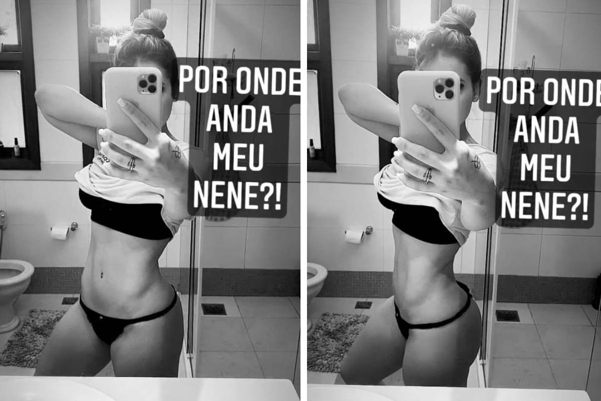 “Por onde anda meu nenê?”, escreveu ela no registro, em que aparece de calcinha e levantando a camiseta para exibir sua silhueta.