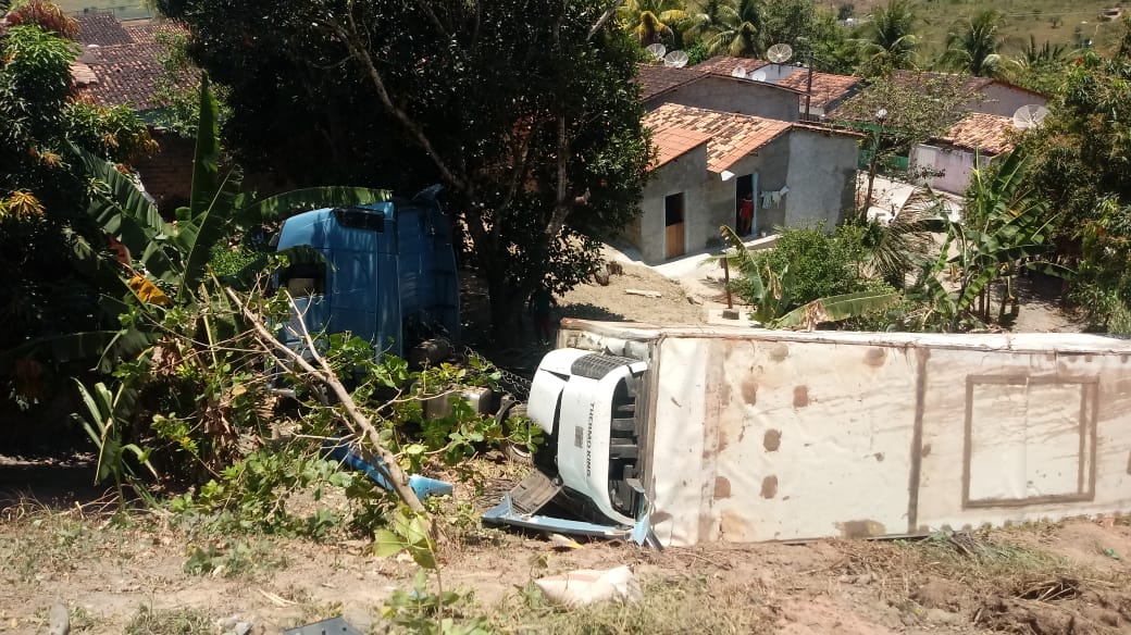 Nas imagens é possível perceber que o veículo ficou a poucos metros de um vilarejo às margens da rodovia. Até o momento não houve o registro de vítimas e a carga está intacta no baú da carreta. A equipe da PRF segue no local para orientar o trânsito e remover o veículo.