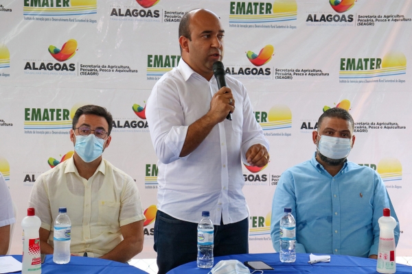 Para selar o termo de compromisso com os agricultores das unidades recebedoras, estiveram presentes o diretor-presidente da Emater, Adalberon Sá Júnior, o secretário de Estado da Agricultura, Pecuária, Pesca e Aquicultura de Alagoas, João Lessa, e o deputado federal por Alagoas, Marx Beltrão.