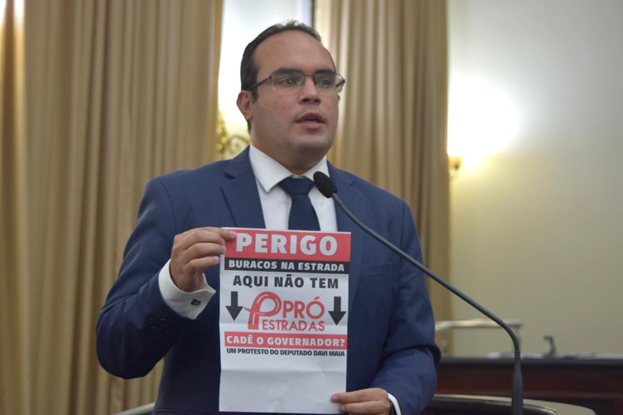 Com placas enunciando “Perigo! Buraco na estrada. Aqui não tem pró-estrada. Cadê o governador?”, o deputado prometeu circular por todo o Estado afixando placas onde encontrar um buraco na rodovia. “Já comecei pelo no Vale do Paraíba, entre Viçosa, Paulo Jacinto, Chã Preta e Quebrangulo”, disse, comemorando que seu protesto já se espalhou pela internet e ganhou simpatizantes em vários municípios. “Hoje temos pedidos para colocação de placa em Olho D’Água das Flores, São José da Tapera, Santana do Mundaú, no povoado do Piau, em Piranhas, Craíbas, enfim, todo o Sertão está esburacado”, finalizou Maia.