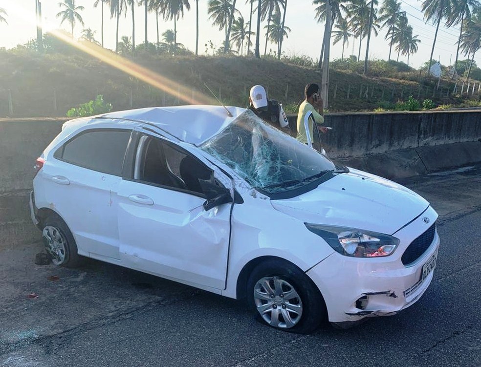 Após perder controle numa curva, bater numa mureta, o carro modelo Ford KA, de cor branca, conduzido por motorista de nome não informado, capotou, nesse domingo (1º), na AL 101 Sul. De acordo com informações do Batalhão de Polícia Rodoviária (BPRv), 2 mulheres e 1 homem que estavam no carro ficaram feridos e levadas ao Hospital Geral do Estado (HGE).