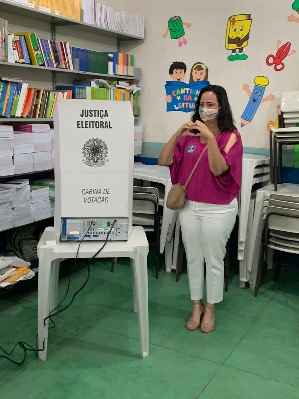 A candidata à reeleição Fabiana Pessoa (Republicanos) votou na manhã deste domingo (15) na Escola de Ensino Fundamental Loja Maçônica Perfeita União II, bairro Novo Horizonte, acompanhada do vice Santiago da Farmácia (PSL), do Senador Rodrigo Cunha (PSDB) e do Deputado Federal Severino Pessoa, além de familiares e amigos.