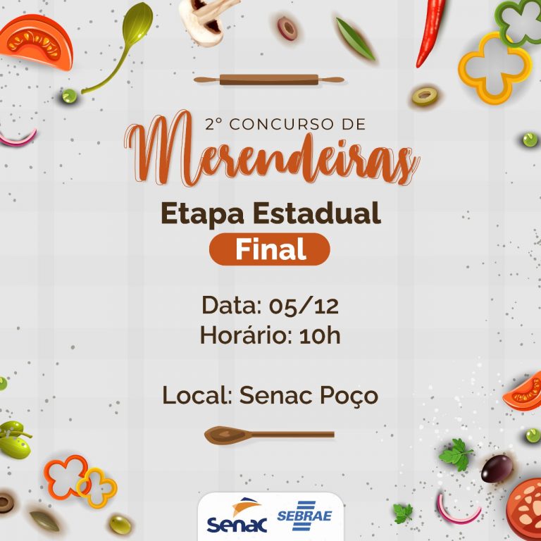 É neste sábado (5.12)! A final do 2º Concurso de Merendeiras, promovido pelo Sebare, em parceria com o Senac, será realizada no Senac Poço, a partir das 10h, onde as finalistas vão preparar os pratos para a avaliação dos jurados. Ao todo, dez merendeiras vão concorrer ao prêmio de R$ 5 mil. A segunda colocada irá levar R$ 2,5 mil e a terceira R$ 1 mil.