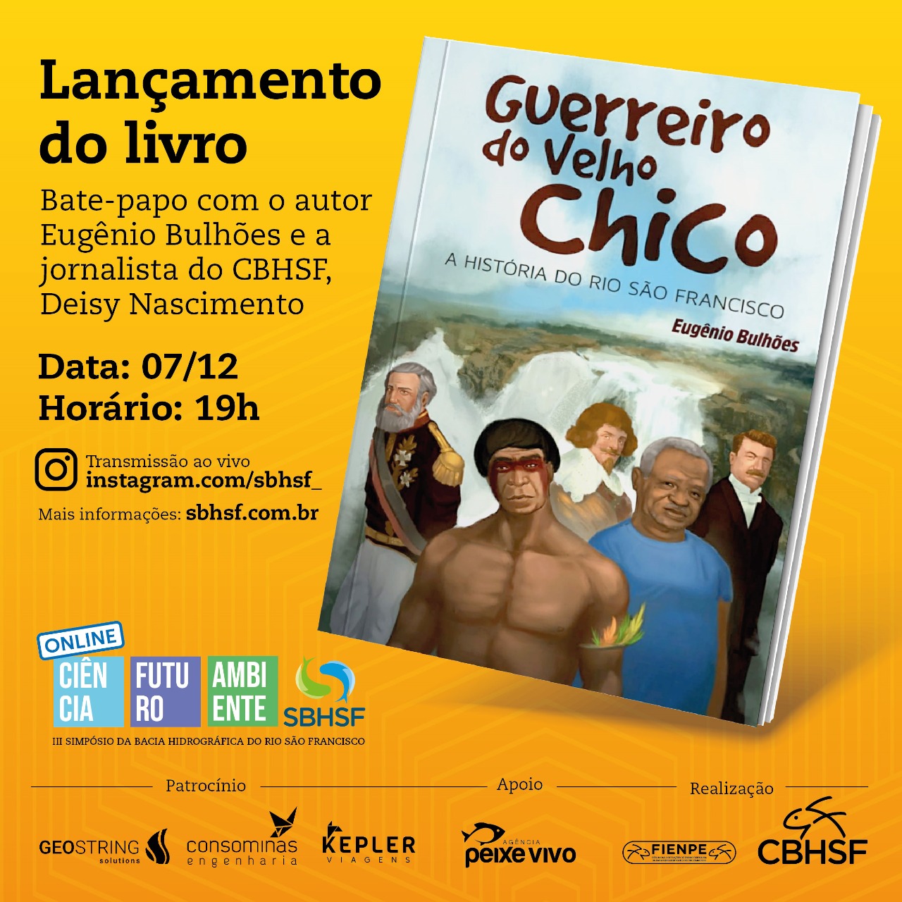 O lançamento será um bate-papo virtual com o autor Eugênio Bulhões e a jornalista do Comitê da Bacia Hidrográfica do Rio São Francisco, Deisy Nascimento. O encontro está marcado para o dia 07 de dezembro, às 19h, e será transmitido ao vivo pelo instagram do III SBHSF.