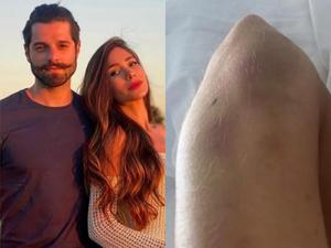 “Oito dias hoje do nascimento da minha bonequinha e as marcas do amor ainda estão por aqui”, escreveu ela no post, onde é possível ver as marcas roxas em um dos braços.