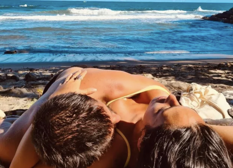 Bruno Gissoni e Yanna Lavigne estão curtindo alguns dias em Itacaré, na Bahia, com alguns amigos e a filha, Madalena, de 3 anos. Na manhã desta quarta-feira (16), a atriz compartilhou um momento de carinho na areia da praia com o marido.