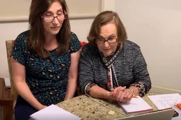 No post, Beth Goulart aparece ao lado de Nicette, no momento em que as duas participavam de uma aula de “ginástica cerebral”.