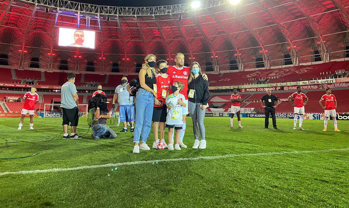 Emocionado, D’Ale foi cumprimentado e erguido pelos companheiros após o apito final, além de receber o carinho da família e assistir a um vídeo com momentos dele vestindo a camisa do Inter e depoimentos de atuais e antigos parceiros de equipe. Em breve discurso, o meia agradeceu à torcida colorada pelo apoio ao longo dos 12 anos em que atuou pelo clube.