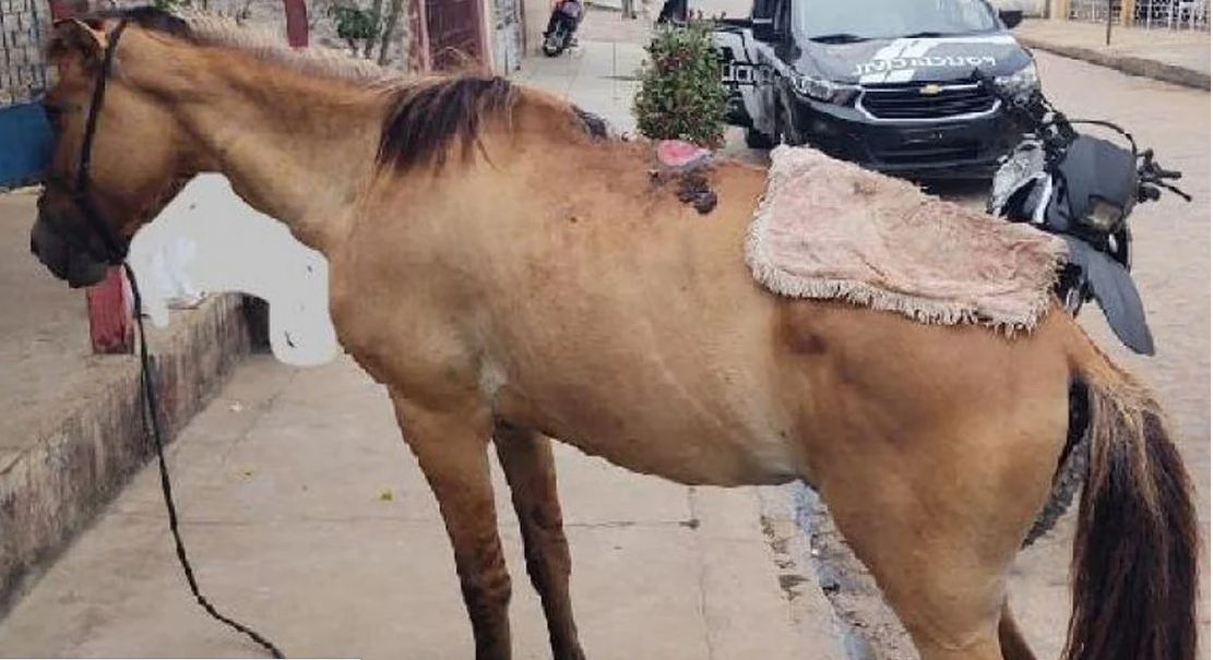 Prisão em flagrante aconteceu após égua ser encontrada amarrada e sem água e alimento