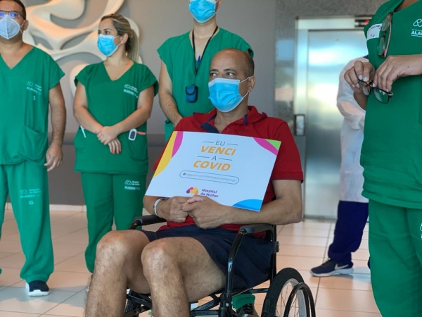 “A gente tá saindo hoje daqui pra viver junto de novo, criar os nossos filhos, netos e bisnetos. Os profissionais que trabalham aqui são verdadeiros anjos. A gente está voltando pra casa com a saúde revigorada”, disse o marido de “Zeza”, ao sair do elevador, segurando a plaquinha “Eu venci a Covid”.