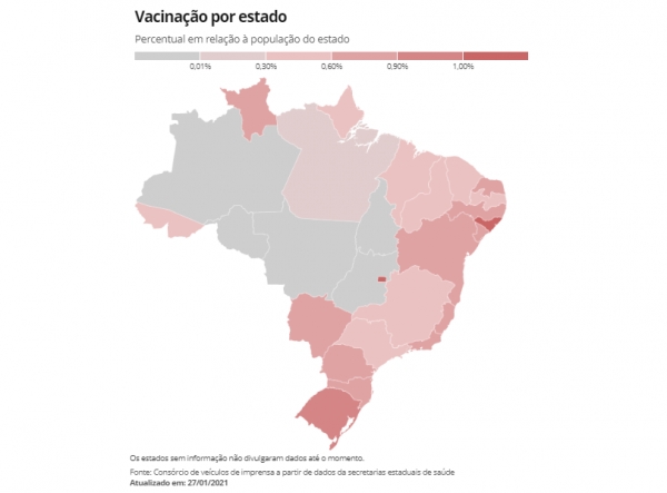 O consórcio de veículos de imprensa é formado por G1, O Globo, Extra, O Estadão de S.Paulo, Folha de S.Paulo e UOL, e passou a divulgar os dados da vacinação no último dia 21.