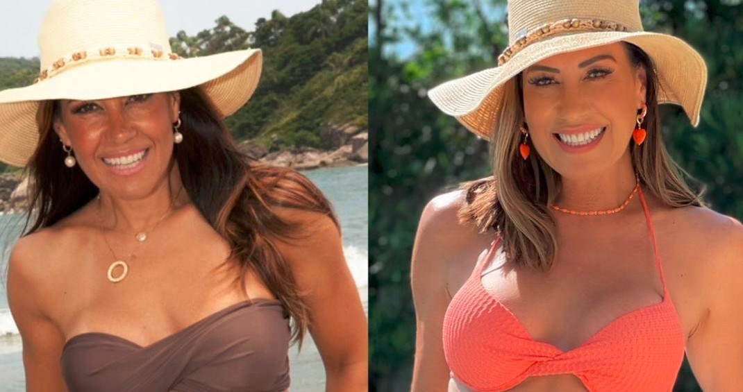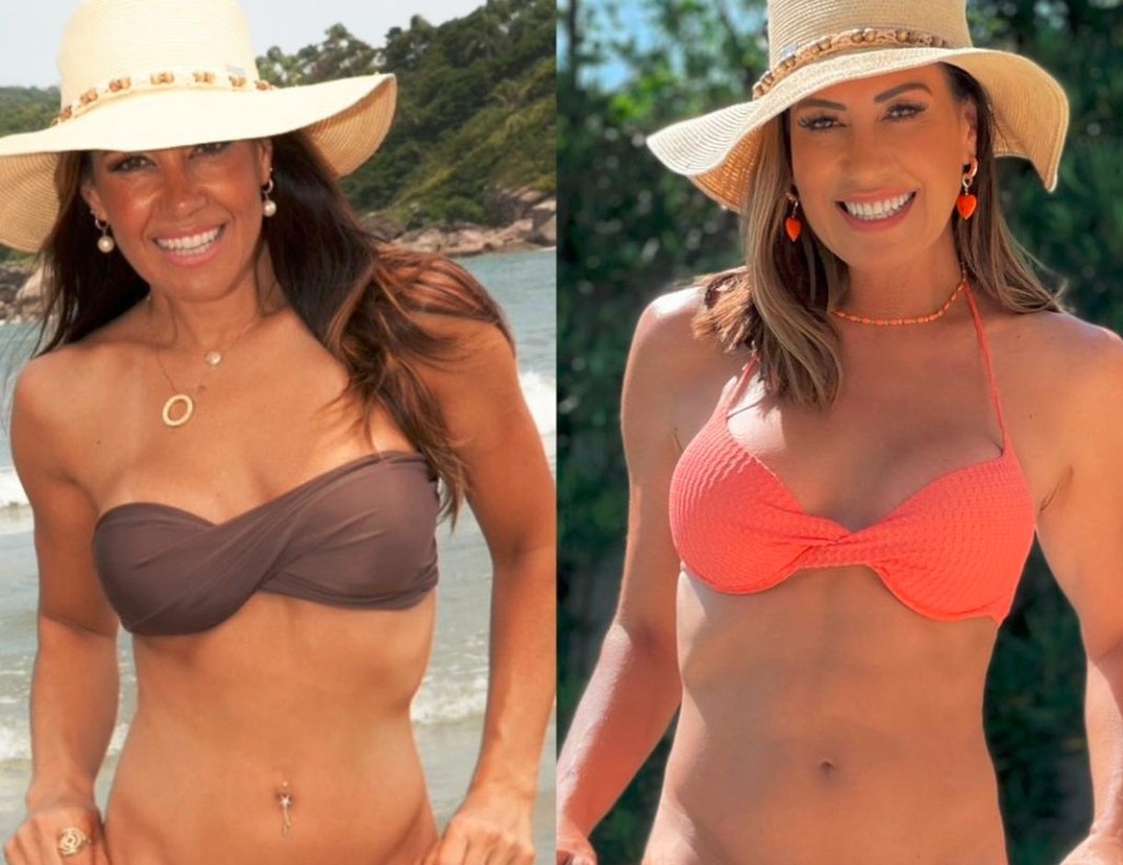 Solange Frazão fez um antes e depois e compartilhou o registro em seu Instagram neste sábado (30). A personal trainer aparece de biquíni e chapéu nas duas imagens. “Aos 48 e aos 58”, escreveu ela na legenda da imagem, feitas em 2011 e 2021.