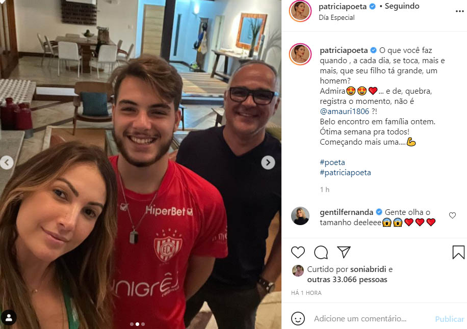 “O que você faz quando, a cada dia, se toca, mais e mais, que seu filho tá grande, um homem?”, escreveu Patrícia na publicação.