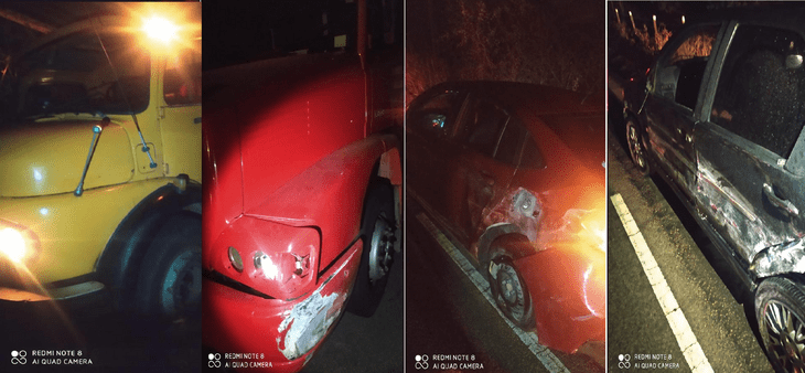 Nesse momento, o condutor do Onix vermelho que vinha na frente tentou desviar dos cones, mas houve o choque com o caminhão. Em seguida, o Onix atingiu a lateral do Fiat Palio, que vinha no sentido contrário. Nenhum motorista precisou de atendimento médico.
