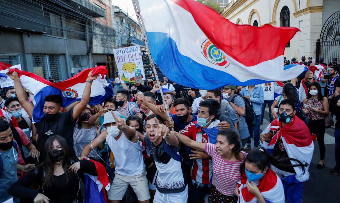Manifestantes e polícia entraram em conflito na capital do Paraguai, Assunção, na noite desta sexta-feira (5), depois que a maneira como o governo vem lidando com a pandemia gerou protestos e causou a renúncia da principal autoridade sanitária do país.