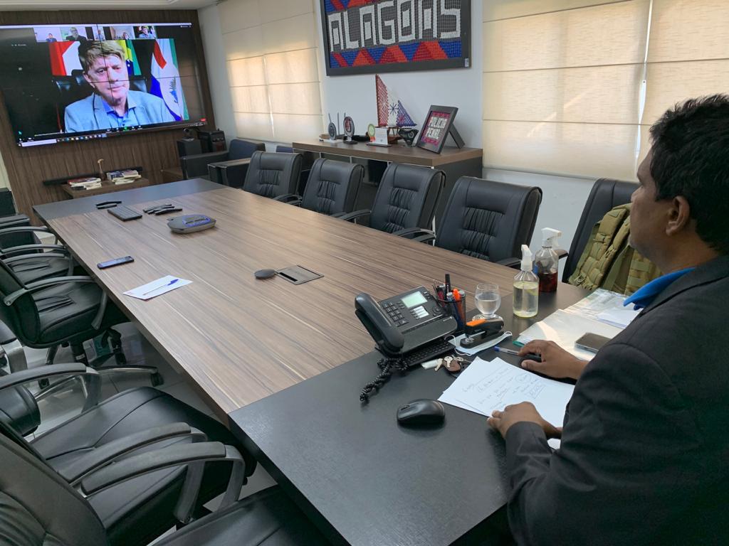 Aprimorar, por meio da tecnologia, a realização de audiências com reeducandos do sistema prisional. Foi com este objetivo que o secretário da Ressocialização e Inclusão Social, coronel PM Marcos Sérgio de Freitas, reuniu-se, na manhã desta quinta-feira (11), com o presidente do Tribunal de Justiça de Alagoas, desembargador Klever Loureiro, e o presidente da Associação Alagoana de Magistrados (Almagis), juiz Sóstenes Alex, para alinhar os últimos preparativos visando à inauguração do 1º Centro de Telepresença do país.