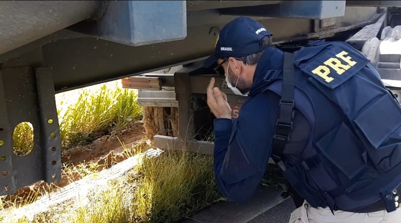 Passava das 11 horas, quando uma equipe realizava fiscalização no trecho e deu ordem de parada a um caminhão Scania/G 440 B6x4, de cor branca, placa de Goiânia/GO, com um ocupante.