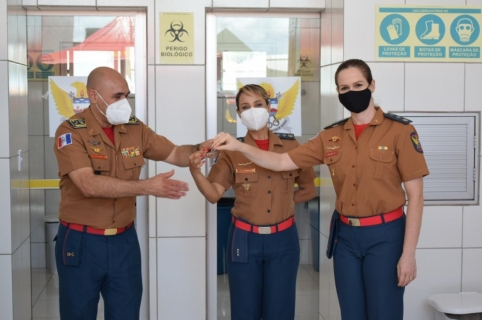 Para a melhor utilização dos recursos disponibilizados nessa sala, na quarta-feira, 17, a major Elaine Monteiro e a Cap Kadja, enfermeiras da Corporação, ministraram uma intrução para alguns militares sobre procedimentos de limpeza e descontaminação de equipamentos e materiais, enfatizarando que, no dia a dia, terão militares escalados para realizarem tais procedimentos.