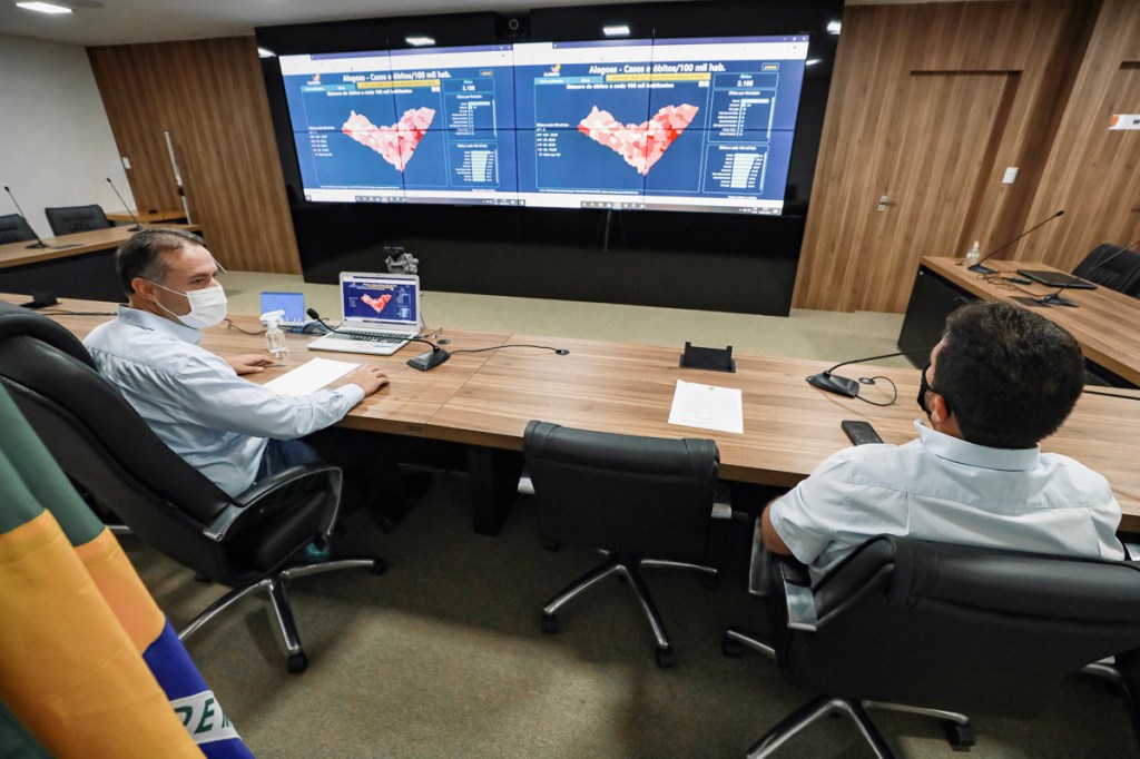 No encontro, o governador apresentou ao presidente da Assembleia o panorama da pandemia em Alagoas, com números de internação, de leitos de UTI abertos, e o desempenho de Alagoas no enfrentamento ao vírus, comparado com o desempenho nacional. “Alagoas é hoje o terceiro estado do Brasil onde menos morrem pessoas por Covid-19, e isso é muito importante”, destacou Renan Filho, reforçando que a solução para a crise sanitária e econômica é a vacinação em massa da população.