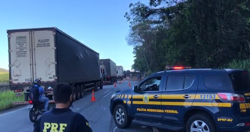 Apesar do susto, ninguém se feriu; trecho está em meia-pista e orientado pela PRF