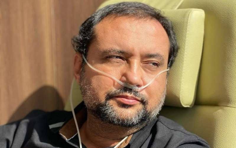 Na legenda, o jornalista conta que estava há 19 dias internado – sendo 10 dias na UTI – e que o orgão foi 70% comprometido. Ele também afirma ter perdido 11kg durante o período.