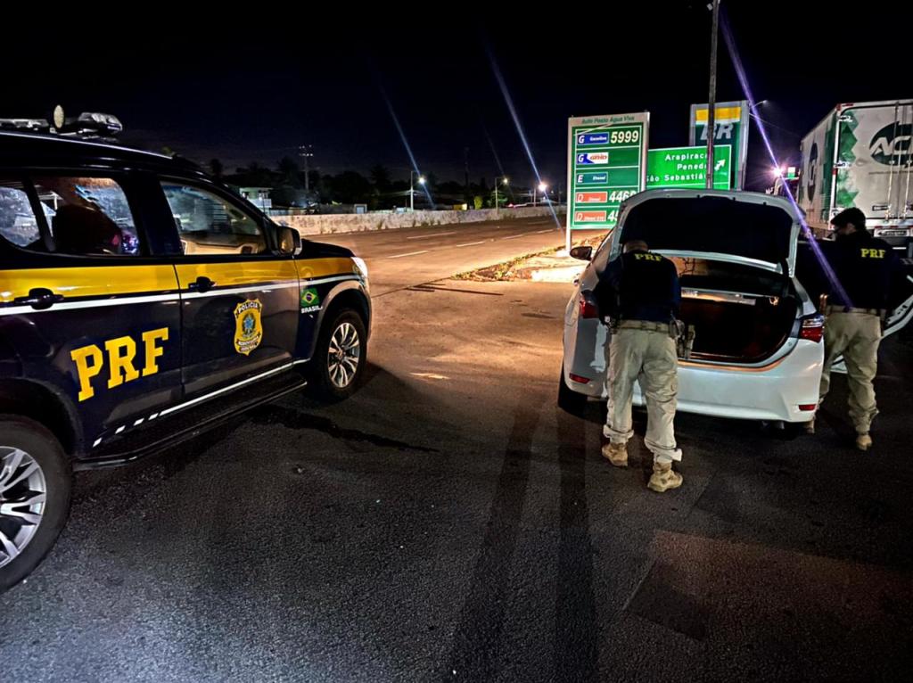 A Polícia Rodoviária Federal (PRF) prendeu dois homens nesta terça-feira (23), durante ação conjunta em parceria com a Divisão Especial de Investigações e Capturas (DEIC) e a Seção de Roubos a Bancos (SERB) da Polícia Civil de Alagoas. A dupla havia cometido diversos furtos em estacionamentos de shoppings e supermercados de Aracaju/SE e levava no veículo o saldo da prática criminosa.