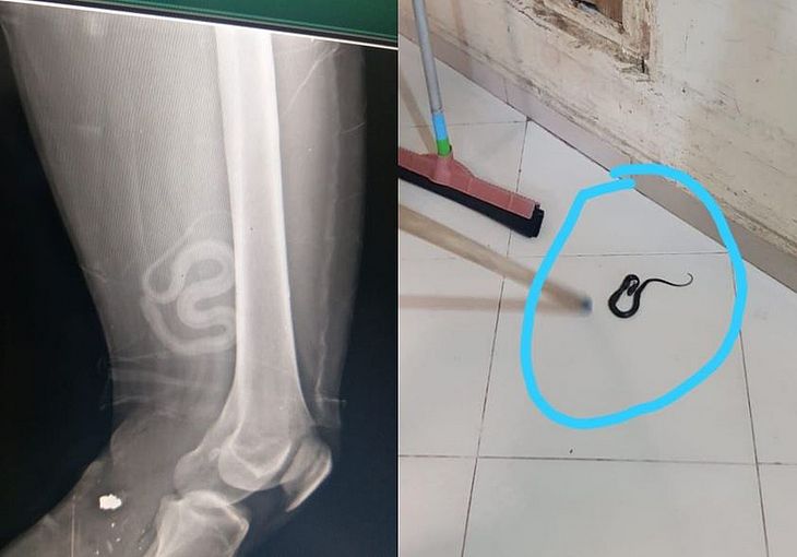Profissionais de saúde que atenderam nesta terça-feira (23) um suspeito de assaltos baleado pela polícia na Zona Sul de Macapá se surpreenderam durante um Raio-X feito para detectar lesões do disparo. Ao suspeitarem de uma forma estranha no exame, perceberam uma pequena cobra dentro da roupa do homem. As informações são do G1.