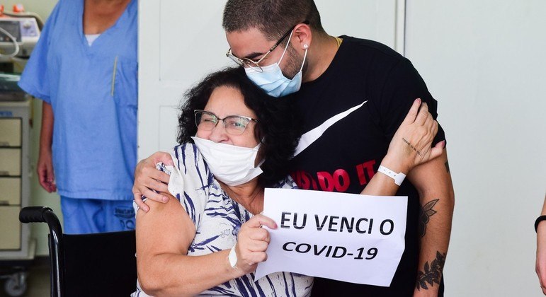 Tânia Tamashiro, mãe de Yudi, recebeu alta do Hospital Polinorte, em Osasco, na grande São Paulo, após ser internada por covid-19.Ela deixou o local de cadeira de rodas e nas mãos, segurava uma placa dizendo que venceu a doença. O encontro entre mãe e filho emocionou a todos que estavam no local.