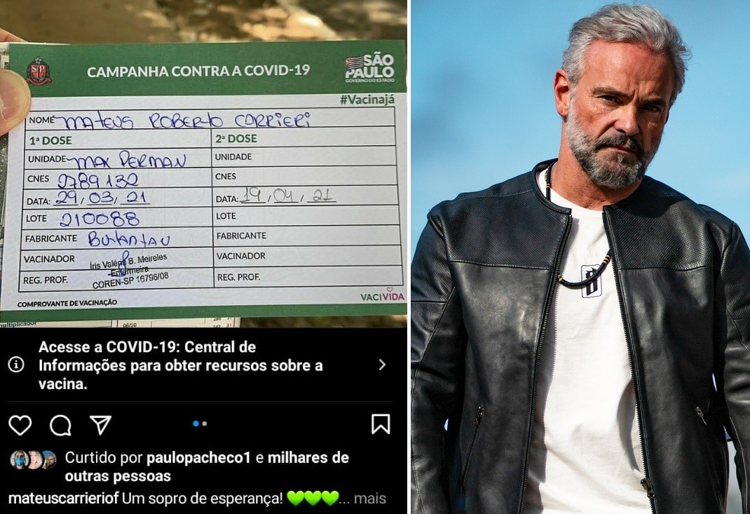 Após mostrar que tinha sido vacinado contra a Covid-19, Mateus Carrieri foi alvo de questionamentos, porque, com 54 anos, ainda não estava na faixa de idade para a vacinação. No entanto, o ator explicou que, além da carreira artística, é formado em educação física e trabalha em um estúdio de ginástica.
