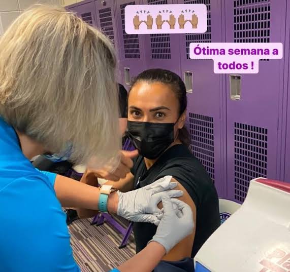 Outro destaque da seleção brasileira, mas da feminina, também foi vacinada nesta segunda-feira. A atacante Marta foi imunizada na Florida (Estados Unidos) junto com outras companheiras de sua equipe, o Orlando City.