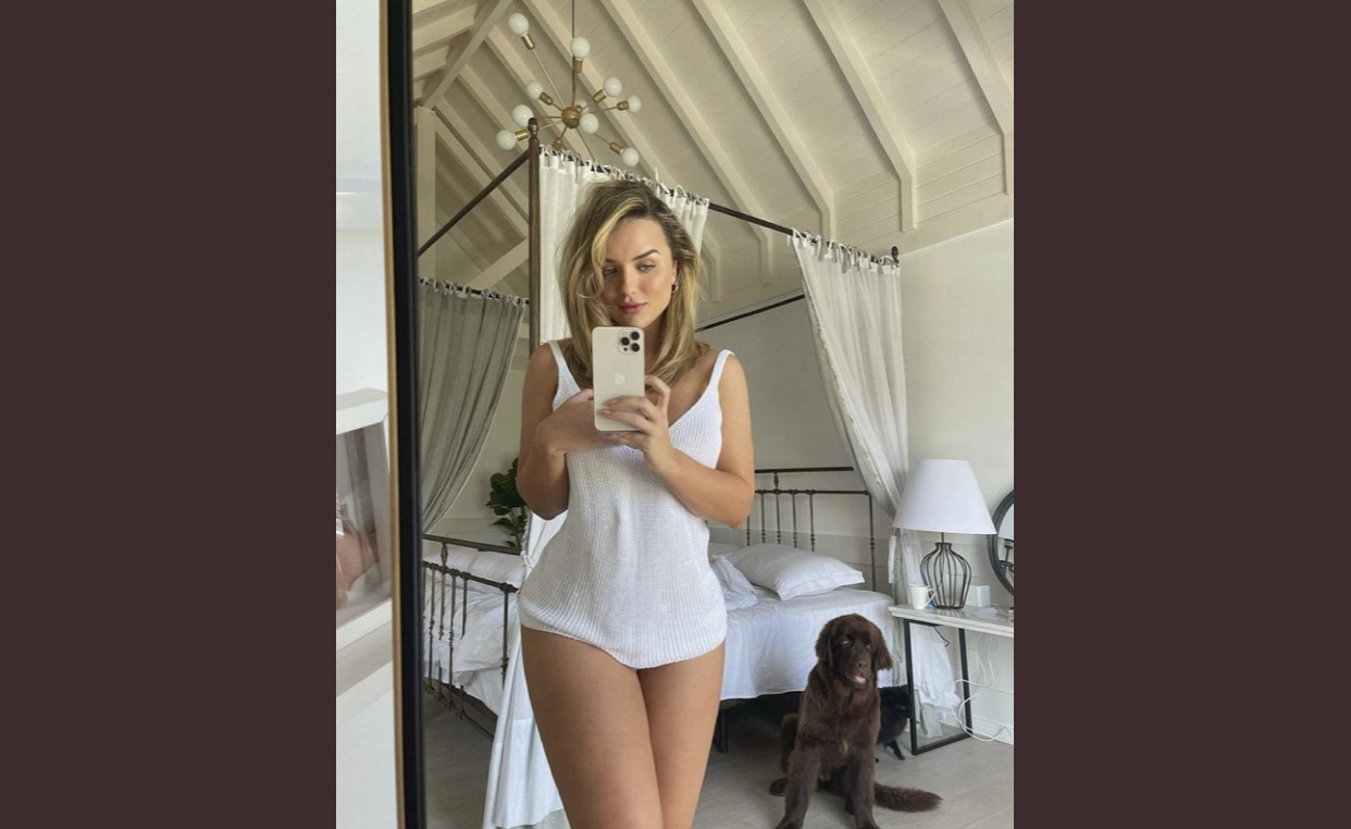 De pernas de fora diante do espelho, a ex-participante do Big Brother Brasil 20 tentou ser sexy, mas foi Fofoca, o novo cachorrinho dela, logo atrás, quem roubou toda a cena.