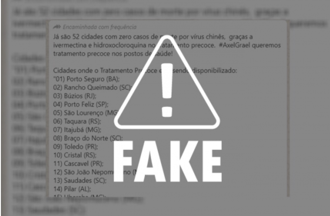 Não é a primeira mensagem que tenta passar o conteúdo falso. Vários municípios citados na lista também foram mencionados em outra mensagem intitulada como “as 16 cidades que zeraram as mortes por Covid-19 após tratamento precoce”, já desmentida pelo portal G1 . A reportagem mostrou que algumas delas até chegaram a reduzir o número de pacientes hospitalizados no começo do ano, como foi o caso de Búzios, mas a própria Secretaria Municipal de Saúde disse que não realiza tratamento precoce e sim diagnóstico precoce.