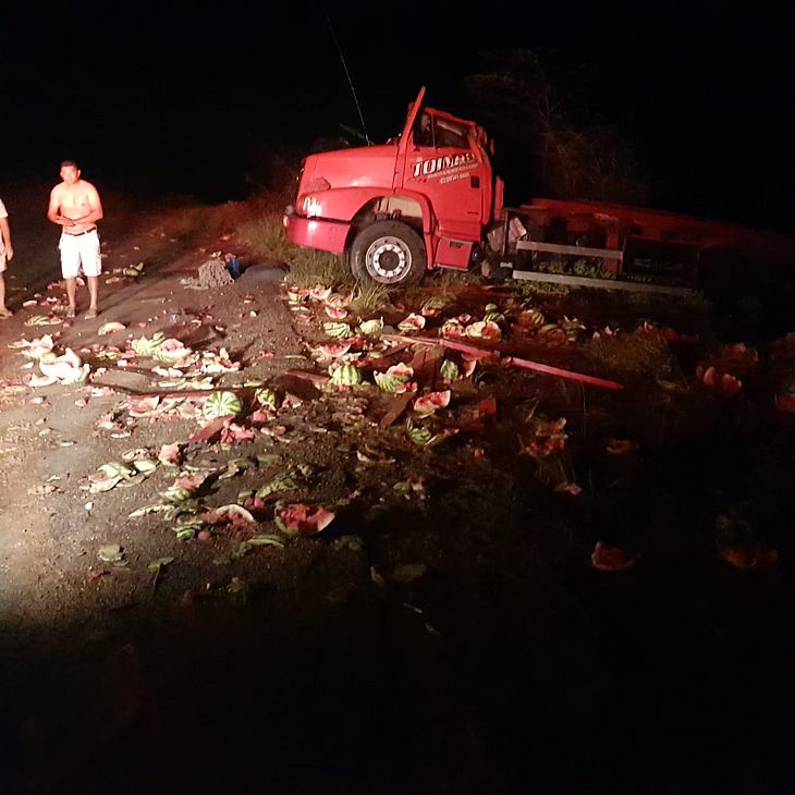 Os acidentados, identificados como Mauro Gustavo da Lima Cruz e Rosival Alves, que estava conduzindo o caminhão, sofreram apenas escoriações, e de acordo com o Batalhão de Polícia Rodoviária (BPRv), uma equipe foi enviada ao trecho do acidente e encontraram o veículo às margens da pista, com a parte da cabine destruída e virada para a pista. As frutas estavam espalhadas pelo chão, com grande número de melancias partidas com o impacto da queda.