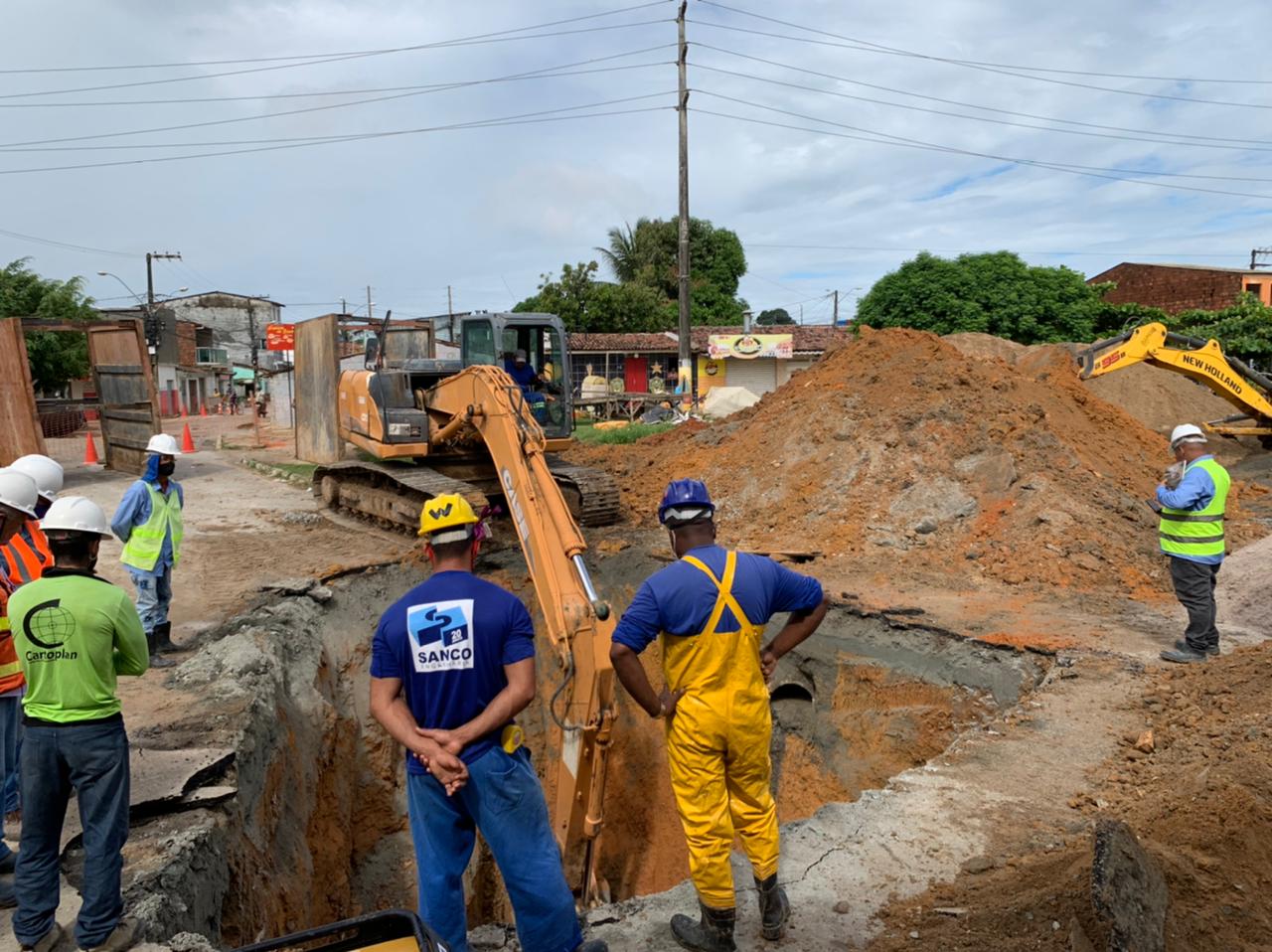 As obras estavam paralisadas desde a última quinta-feira (15) devido às fortes chuvas que atingiram a capital. Na volta às atividades, os trabalhadores se depararam com alguns problemas, como a presença de sacos de areia obstruindo a passagem da rede coletora, no bairro do Clima Bom.