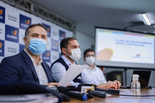 “Mesmo com a queda de casos ativos, a queda de casos novos, a redução na taxa de transmissão e a redução da ocupação de leito hospitalar, o Governo do Estado resolve deixar toda Alagoas em bandeira vermelha para sinalizar às pessoas que a gente precisa manter as medidas de distanciamento social”, esclareceu o governador. “Mas, gradativamente, vamos reiniciar a retomada de alguns segmentos econômicos”, complementou.